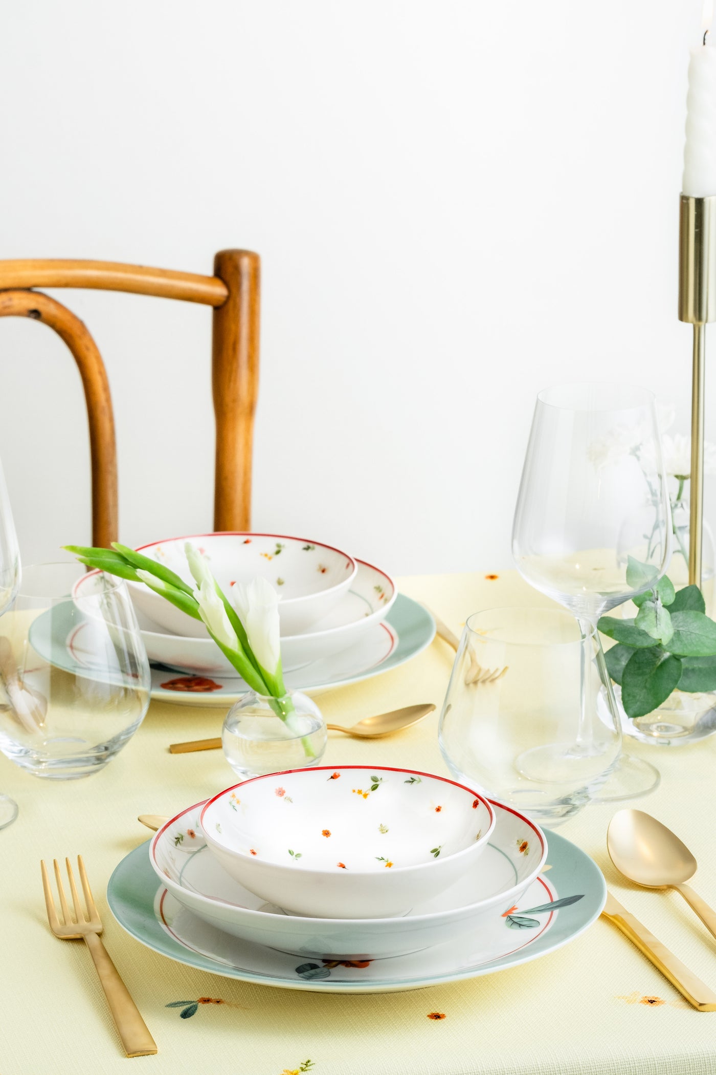 4 Adet 25cm Servis Tabağı4 Adet 20cm Çukur Tabak 4 Adet 15cm Kase 4 Adet 20cm Tatlı TabağıTOPLAM 16 PARÇA.
