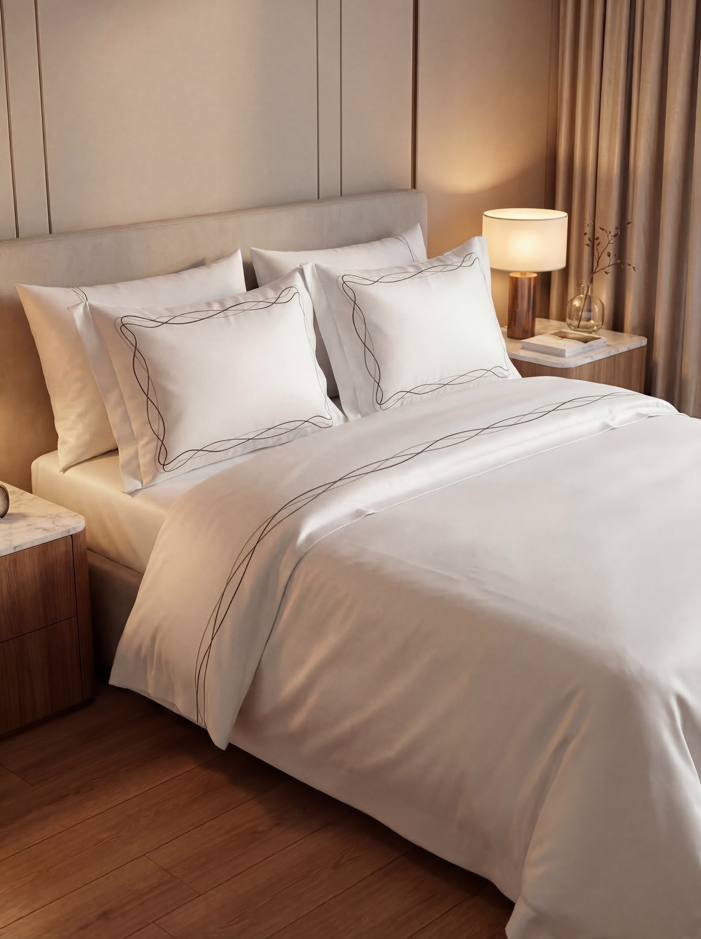 NEVRESİM TAKIMI ÇİFT KİŞİLİK HARMONY DESENLİ KAHVE - 120 TEL PAMUK SATEN