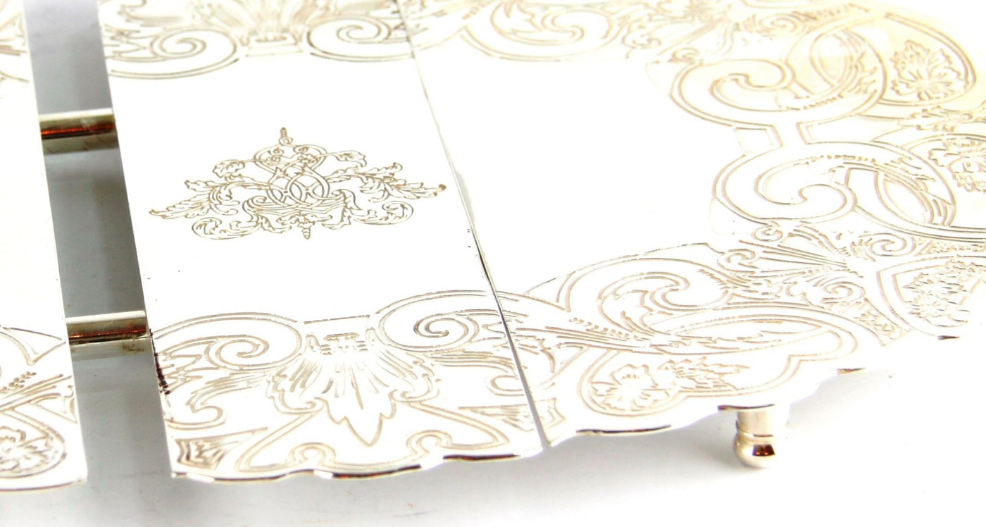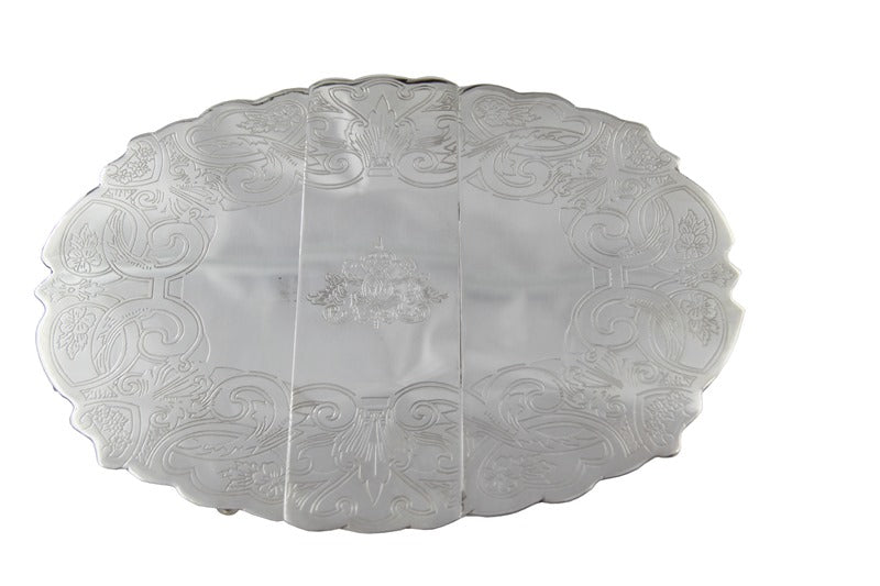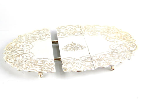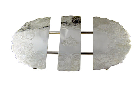 Royal Family Uzatılabilir Gümüş Nihale, zarif ve pratik bir eğlence aksesuarıdır. Sheffield gümüş renginde,Nihale klasik bir kazınmış tasarıma ve çıkarılabilir bir orta parçaya sahiptir, bu da onu servis ettiğiniz herhangi bir yemek için mükemmel boyutta yapar.