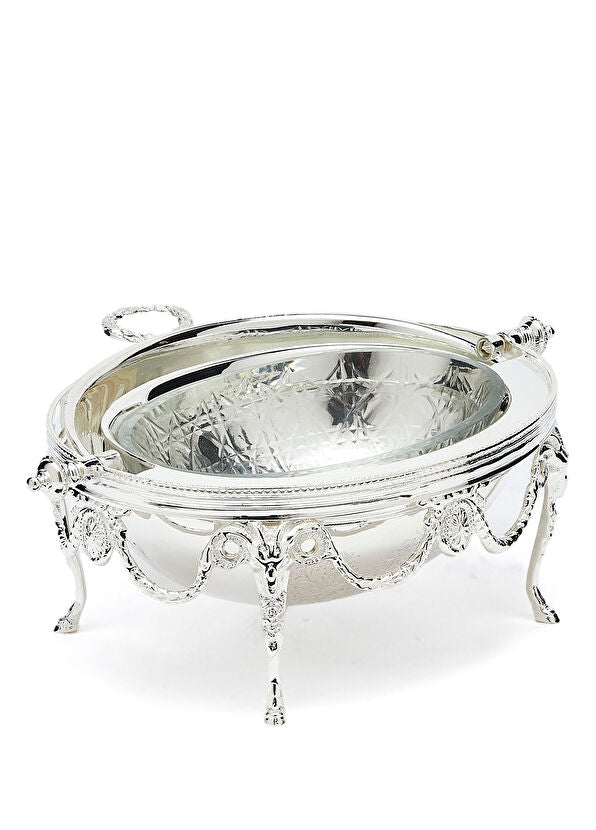 Özel bir günde masanızı süslemek için mükemmel olan parlak Sheffield gümüşünden yapılan bu çeşni tabağı, geleneksel bir sürgülü tablaya sahiptir. Çanak, aynı zamanda daha kolay temizlik sağlayan zarif bir iç cam tabakla birlikte gelir.